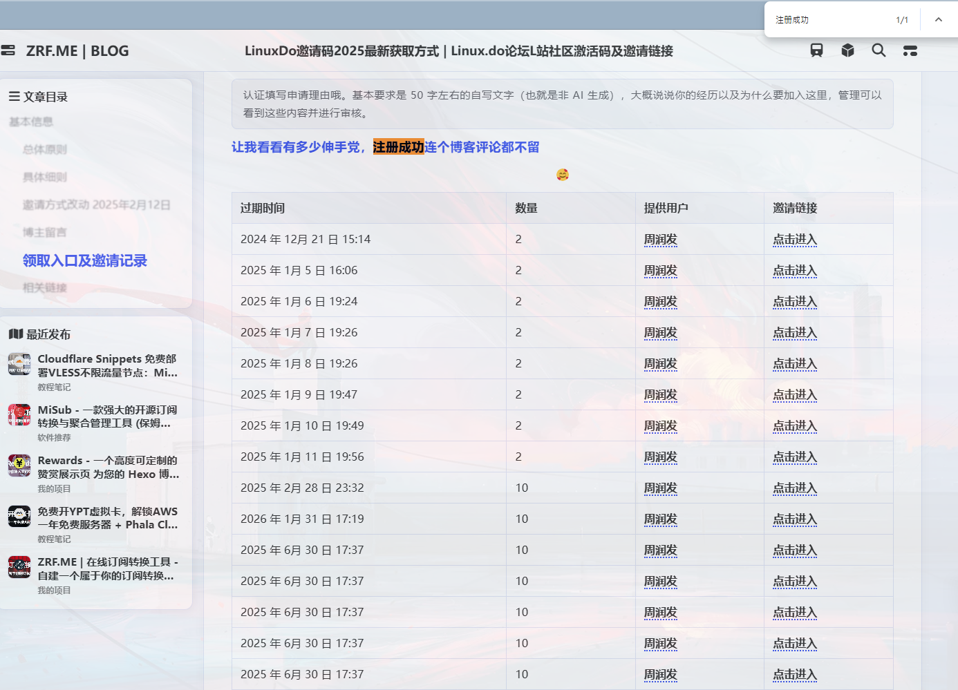 ctrl+f 搜索”注册成功”,即可跳转到邀请码列表,滑倒最底下即可看见最新的邀请码列表