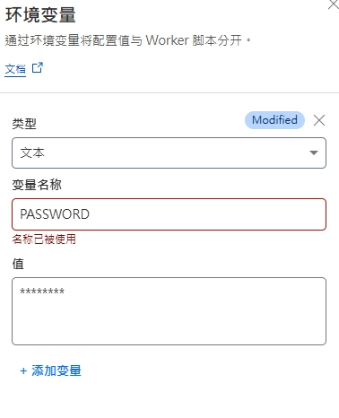 8.返回worker界面点击设置->变量和机密->添加,设置一个密码